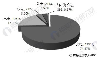 就發(fā)電結(jié)構(gòu)來(lái)看,2016年,水電發(fā)電量10518億千瓦時(shí),占全國(guó)發(fā)電量的17.8%;火電發(fā)電量43958億千瓦時(shí),占全國(guó)發(fā)電量的74.37%;核電、風(fēng)電和太陽(yáng)能發(fā)電量分別為2127億千瓦時(shí)、2113億千瓦時(shí)和395億千瓦時(shí),比重分別為3.60%、3.57%和0.67%。