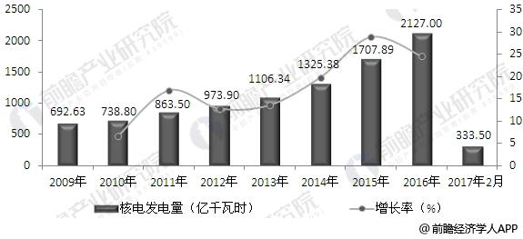 2009-2017年中國(guó)核電發(fā)電量增長(zhǎng)情況