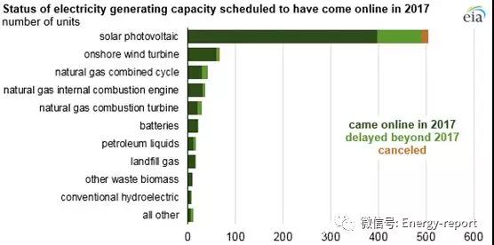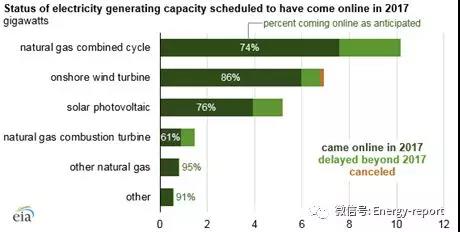 根據美國能源信息署數據,2018年美國將增加25.1GW電力裝機容量。這些增量中的19.7GW(78%)已按照計劃于去年并網。大約5.3GW的規劃裝機容量推遲到今年或之后幾年建設。少量項目被取消。