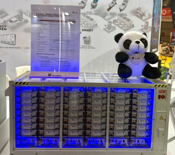 圖:開(kāi)發(fā)科技在歐展現(xiàn)場(chǎng)的儲(chǔ)能柜模型