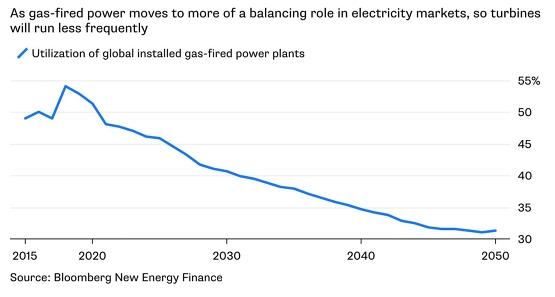 BNEF預計到2050年全球額外的峰值天然氣產量將達到1,002千兆瓦,這將繼續是“更便宜,更多靈活的選擇“到大型聯合循環燃氣廠。