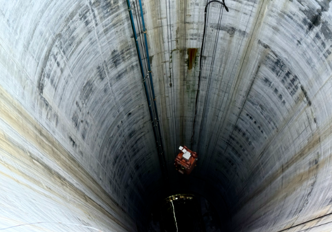 該工程應(yīng)用了國內(nèi)首臺(tái)全斷面擴(kuò)孔式超深豎井掘進(jìn)機(jī)等創(chuàng)新裝備,采用新型工法施工。施工數(shù)據(jù)顯示,豎井導(dǎo)井最大偏斜率、擴(kuò)井后井徑最大偏差等關(guān)鍵指標(biāo)優(yōu)于行業(yè)標(biāo)準(zhǔn),并在日掘進(jìn)進(jìn)尺、月掘進(jìn)進(jìn)尺及整體工期等方面創(chuàng)造了行業(yè)紀(jì)錄。