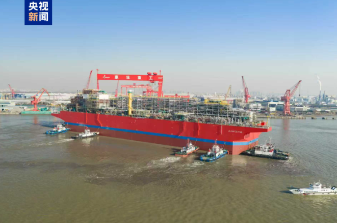 中國自主研發建造大型浮式天然氣液化裝置在江蘇南通成功出塢