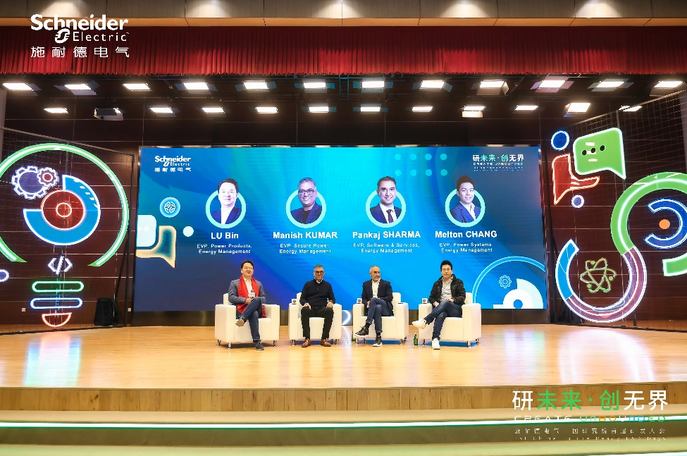 在業(yè)務線圓桌論壇環(huán)節(jié),施耐德電氣執(zhí)行副總裁、能源管理低壓配電產品事業(yè)部負責人陸斌,施耐德電氣執(zhí)行副總裁、能源管理關鍵電源業(yè)務負責人Manish Kumar,施耐德電氣執(zhí)行副總裁、能源管理軟件與服務業(yè)務負責人Pankaj Sharma,與施耐德電氣執(zhí)行副總裁、能源管理電力系統(tǒng)業(yè)務負責人Melton Chang,圍繞產業(yè)發(fā)展趨勢、全球業(yè)務布局及跨領域創(chuàng)新合作展開深度對話,為研發(fā)團隊明確了未來技術布局與中國研發(fā)定位。