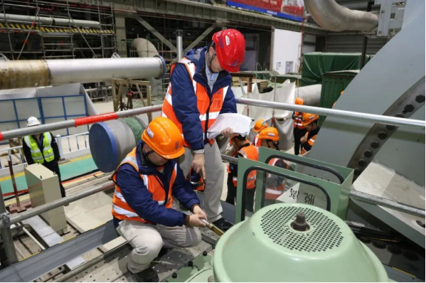為確保3號機組盤車可用節點安全高效實現,三門核電二期工程調試隊在調試控制中心(SCC)的統一指揮下,嚴格落實“追求卓越·改革破局”年工作部署,強化統籌協同、嚴守核安全底線,細化專項方案,抓實全過程質量管控,調試與工程人員團結協作、輪班作業,克服潤滑油沖洗油質要求遠高于國標要求和沖洗周期長、防異物等級高、臨措恢復工程量大等困難,并先后解決了氫氣密封油管線傾斜度缺陷、前軸承箱異音等一系列問題,以嚴慎細實的作風保障盤車試驗一次成功。