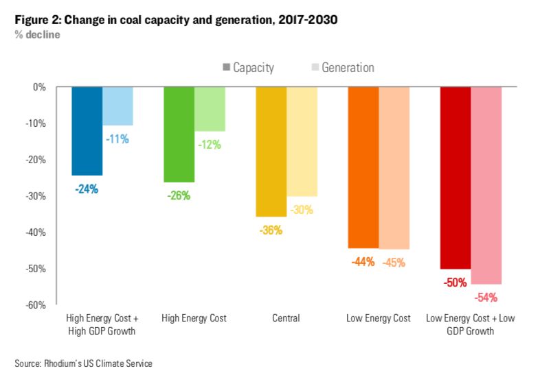 新預測基于其在6月份發布的2018年采購庫存報告中收集的數據,使用一系列方案來預測煤炭產能的退役和煤炭總發電量的減少。