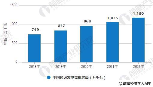 2018-2022年中國垃圾發(fā)電裝機(jī)容量統(tǒng)計(jì)情況及預(yù)測