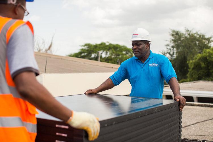 太陽能電池板安裝在總理在牙買加的住所。