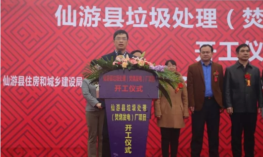 仙游縣政府副縣長戴華挺在致辭中指出:“該項目作為我縣的第一個PPP項目,縣委、縣政府高度重視,社會各界也十分關注。特別是在近年來寨嶺垃圾填埋場庫容飽和、全縣垃圾外運莆田處理的情況下,早日實現項目的竣工運營,意義重大。”他要求項目的建設、施工、設計、監理等各方主體要切實履行好職責,高標準、高效率、高質量地建設好垃圾焚燒發電廠;要求書峰鄉黨委、政府和縣直有關單位做細、做實、做通群眾的思想工作,取得群眾理解,確保該項目有序推進,早日竣工運營,造福人民。