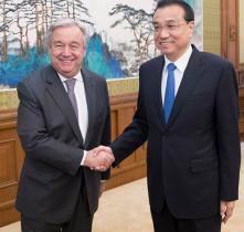 4月8日,國務院總理李克強在北京釣魚臺國賓館會見來華進行正式訪問的聯合國秘書長古特雷斯。 新華社記者王曄攝新華社北京4月8日電(記者崔文毅)國務院總理李克強8日下午在釣魚...