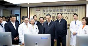 4月10日至11日,中共中央政治局常委、國務院總理李克強在上海考察。這是4月11日,李克強在華山醫院通過互聯網遠程會診系統與青海果洛、云南騰沖、新疆喀什的醫務人員對話。新華...